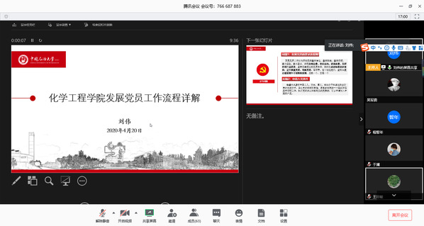 刘伟从“发展党员的要求及原则”、“申请入党条件”两个问题切入,将发展党员工作流程分成37个步骤,并就每一步的具体任务、工作流程及注意事项进行了详细解释和说明。他谈道,各党支部书记、支部委员和党小组组长要加强学习,不断提高思想认识,提升业务能力,发展党员工作实行全程问责、终身追责,容不得一丝马虎。