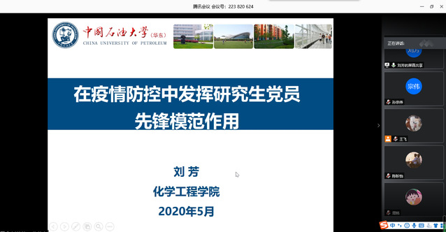 会议伊始,刘芳以一则抗疫公益短片《逆行与坚守》向支部党员展示身处不同岗位的共产党员如何坚守抗疫一线。接着,刘芳以“什么是党员的先锋模范作用”入题,向支部全体成员介绍了党员的先锋模范作用,即党员在人民群众中起着带头、骨干、桥梁作用,影响和带动周围群众实现党的纲领和路线的行动。会上,支部书记孙宗伟同志通过分享自己寒假期间在村里的疫情防控小组执勤的经历来呼吁大家疫情期间,要守住初心,承担使命,以身作则,共同抗疫。随后,刘芳就“学生党员在疫情期间如何发挥党员先锋模范作用”提出四点建议:第一,要遵守党的号召,严格防控疫情;第二,党员要树立责任感,在疫情中守初心、担使命;第三,停课不停学,巩固好学业知识;第四,强化责任意识,发挥党支部战斗堡垒作用。最后,刘芳与支部成员就学习生活上的问题进行了详细地交流与讨论。