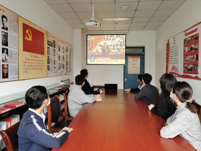 辅导员党支部组织党员在学院党建工作室观看了开幕会直播,其中窦雅琴表示:李克强总理作的政府工作报告,回应了民生期盼,让我们感受到了疫情防控工作中生命至上、守护人民健康的决心和众志成城、难关必过的信心。也从下一阶段工作部署中看到党和国家对改革发展、全面建成小康社会的全面布局,振奋人心、鼓舞斗志。我们必将立足岗位实际,积极作为,砥砺前行,为新征程的蓝图绘制做出自己的贡献。
