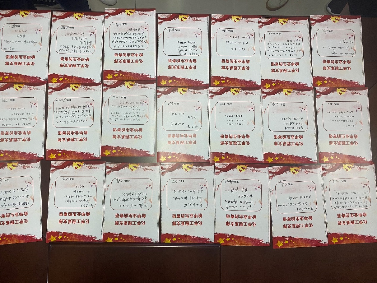 结合活动主题,化工系党支部的所有党员提前为毕业生手写了寄语卡片,表达了对毕业生满满的祝福。于筱溪代表支部党员表示,迎新、毕业是大学四年两个重要节点,开学是传播希望,更多的是出发,毕业则更多的是收获,也是另一个人生阶段的开始,期望同学们牢记“家国同心、艰苦奋斗、惟真惟实、追求卓越”的石大精神,在新的学习、工作岗位上积极向上,不断提升能力,实现梦想。希望同学们毕业后与化工系保持联系,常回家看看。