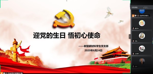 6月24日,化学工程学院新型碳材料学生党支部积极响应疫情防控常态化“四个一”行动要求,结合学校党委的组织生活指导意见,举办以“迎党的生日,悟初心使命”为主题的党日活动。全体党员和积极分子参与到整个活动当中。