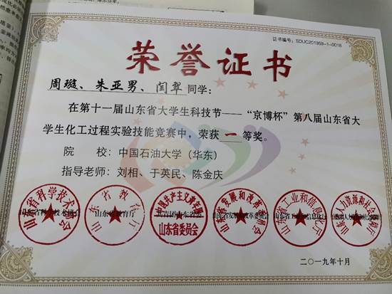 2017-11-17山东省化工过程实验技能竞赛石大获一等奖