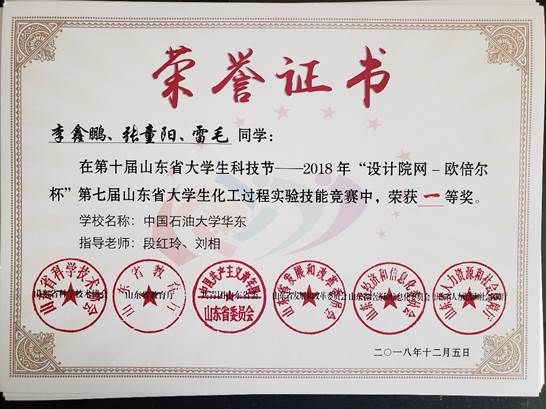 2018-12-06第七届山东省大学生化工过程实验技能竞赛我校获一等奖