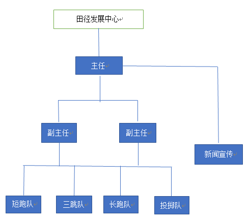 田径发展中心现设有主任一名,副主任两名,田径队长四名,其余干事五名。