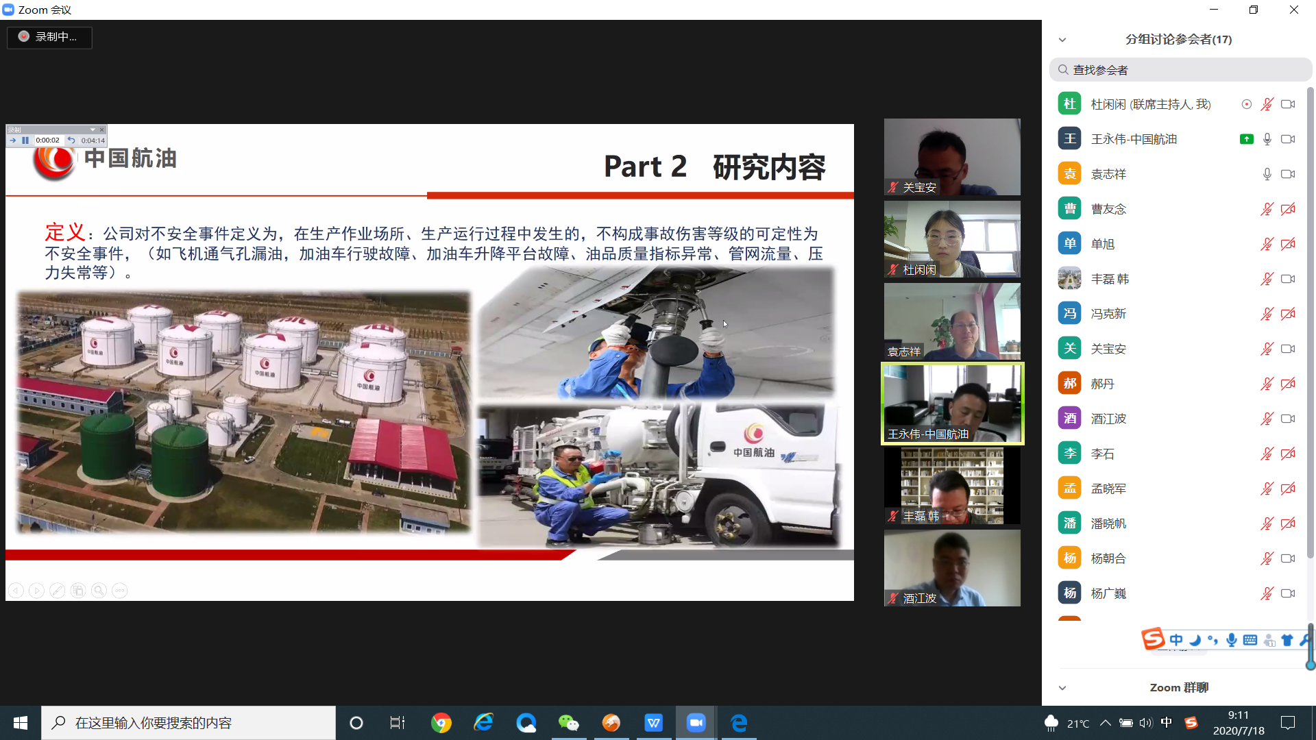 7月18日上午,太阳成集团tyc33455cc第二届化工安全复合型人才高级研修班线上答辩工作顺利开展。来自中石油、中石化、中国化工、万华化学等送培企业的专家和校内导师团共同组成此次答辩专家委员会。化学工程学院院长暨安全监管监察学院(青岛)院长杨朝合、安全监管监察学院(青岛)专家委员会主任赵东风、赵朝成教授和刘义副院长分别担任四个答辩专家组组长。