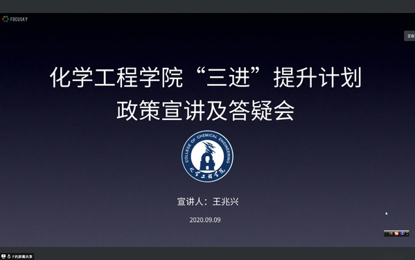 为加深学院学生对于学校今年实行的“三进”提升计划的了解,解答关于”三进”提升计划相关问题,学院于9月9日晚召开“三进”提升计划政策宣讲及答疑会。此次会议由2019级辅导员王兆兴主持,拟参加”三进”提升计划的学生们参加了此次会议。