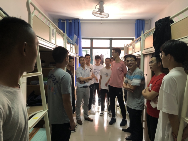 在与新生面对面的交流中,老师们介绍了学院和专业的相关情况,详细询问了新生们生活上是否存在困难,并为同学们解答各类问题。老师们鼓励新同学要尽快适应大学生活,积极锻炼个人能力,追求卓越,成就自我。杨朝合教授对同学们说道,欢迎大家加入化学工程学院大家庭,希望同学们认真投入学习,锻炼好身体,保持良好的精神状态。李国书记带队探望了应用化学专业男生,他对同学们的到来表示欢迎,并希望同学们牢记郝芳校长在开学典礼中的嘱托,自律、拼搏,珍惜大学时光,成长为可堪大用的栋梁之才。