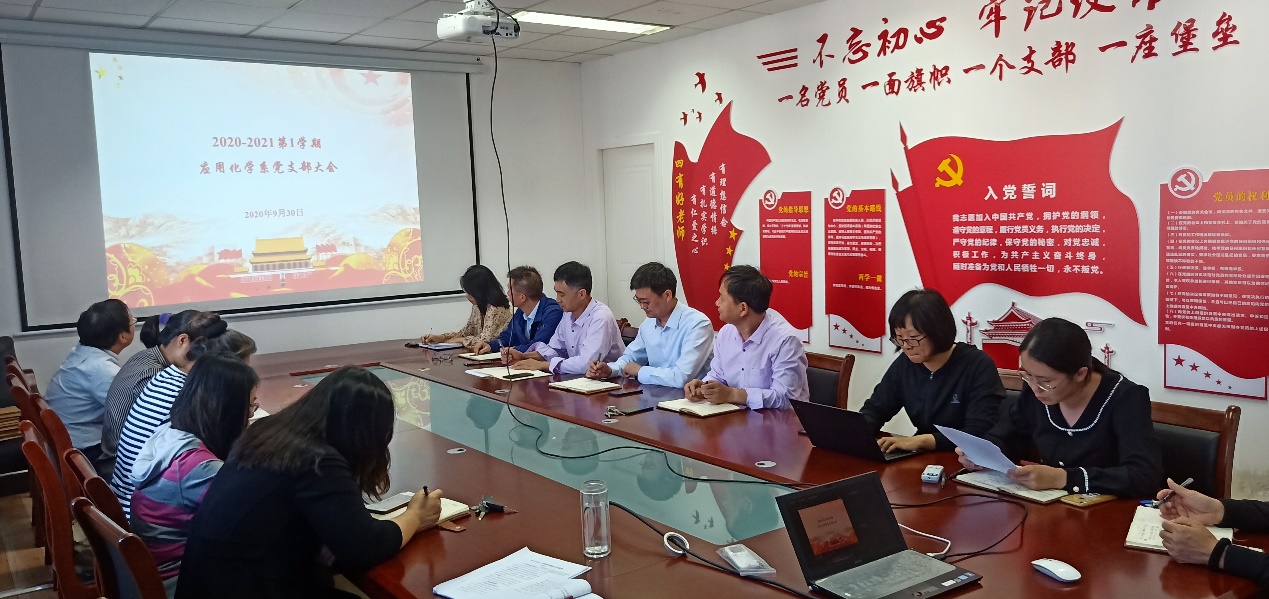 9月30日下午,应用化学系党支部在工科楼A629召开了新学期党支部大会,会议由支部书记杨修洁主持,全体党员教师参会。