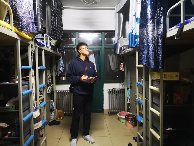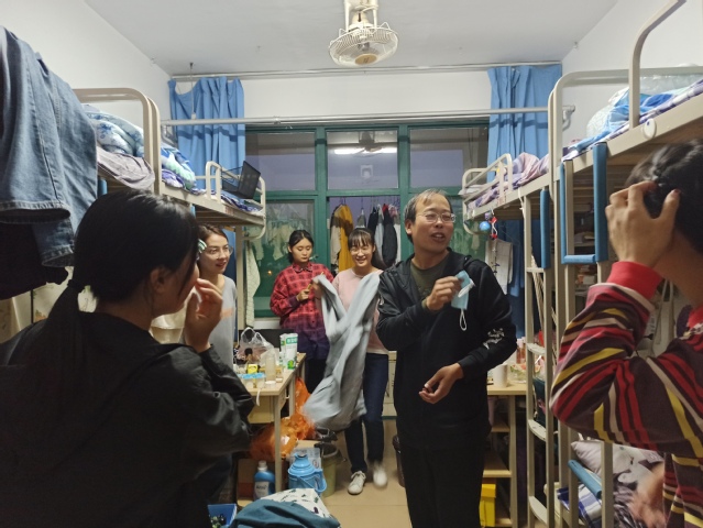 辅导员检查学生宿舍卫生安全情况 王一凡摄影