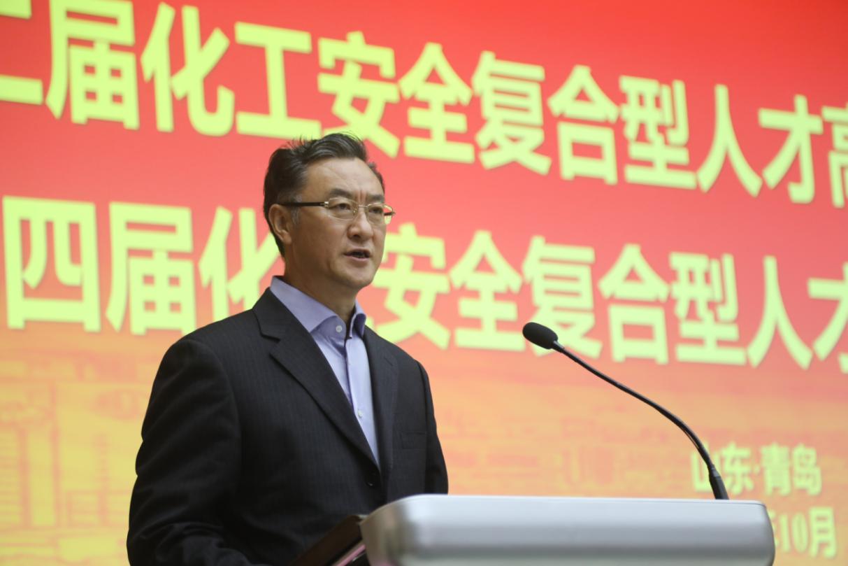 10月10日上午,第二届化工安全复合型人才高级研修班结业典礼暨第四届化工安全复合型人才高级研修班开班仪式在我校举行。安全监管监察学院(青岛)技术委员会主任、安全环保与节能技术中心主任赵东风教授主持本次活动,国务院安委办副主任,原应急管理部党组成员、总工程师王浩水,应急管理部危险化学品安全监管司处长刘丽,新疆生产建设兵团应急管理局党组成员、副局长付强,山东省应急厅总工程师张秀文、危化处副处长李冰,中国化学品安全协会秘书长路念明,原中石化青岛安全工程研究院院长、应急管理部化学品登记中心主任孙万付,中国石油化工集团有限公司安全监管部副总经理杜红岩,中化集团健康安全环保部总监陈碧锋,中国化工集团安全总监兼安全环保部主任李瑞亢,万华化学集团股份有限公司副总裁陈毅峰、中国石油天然气集团有限公司质量安全环保部处长胡月亭,国家能源投资集团有限责任公司安环部处长田勇,中国石油大连石化公司安全总监朱文军等出席。
