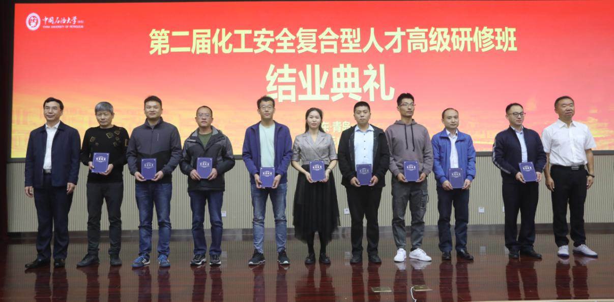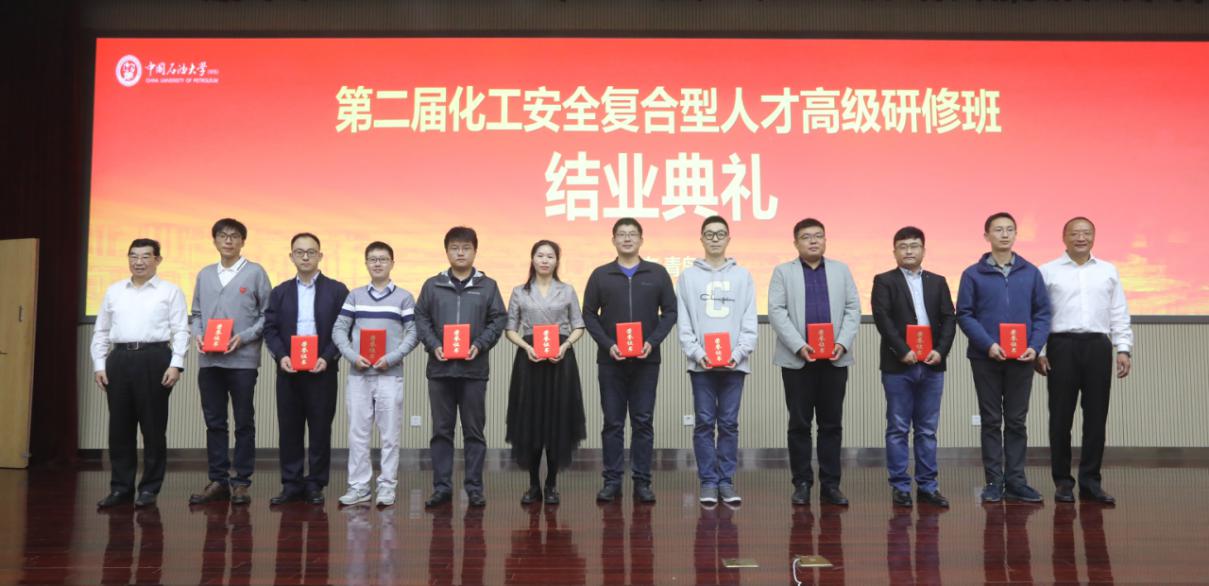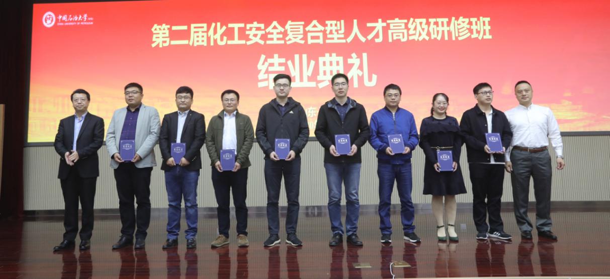 中国石油大学(华东)党委副书记、副校长刘华东代表学校介绍了学校的发展历程和取得的成就,感谢大家多年来对学校人才培养工作的大力支持;太阳成集团tyc33455cc化学工程学院院长、安全监管监察学院(青岛)院长杨朝合教授代表学校宣读授予学员结业证书、优秀毕业论文和优秀学员称号的决定,国务院安委办副主任王浩水同志亲自为优秀学员颁发结业及荣誉证书。