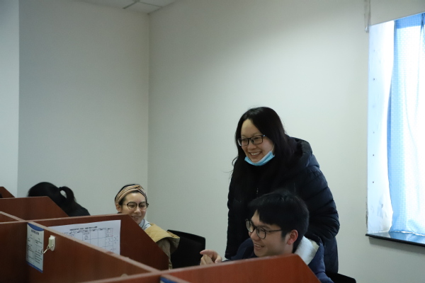 窦雅琴老师慰问学生们的学习情况 雷萌萌摄