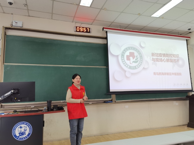 为加强新⼀届⻘协成员对于志愿服务⼯作的相关内容的了解和熟悉,同时在抗击疫情的战役还未结束的关键时期,保证成员防控疫情意识不松懈,12月10日上午,化院青阳青年志愿者协会邀请⻩岛中医院专业⼈⼠,在西环305举办有关对接⻩岛中医院的志愿服务⼯作培训,并进⾏疫情防控相关的知识学习。