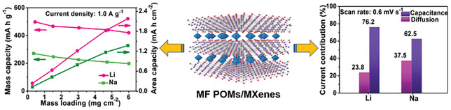 图3. 杂多酸与MXene复合结构提升高载量下赝电容储锂/钠性能