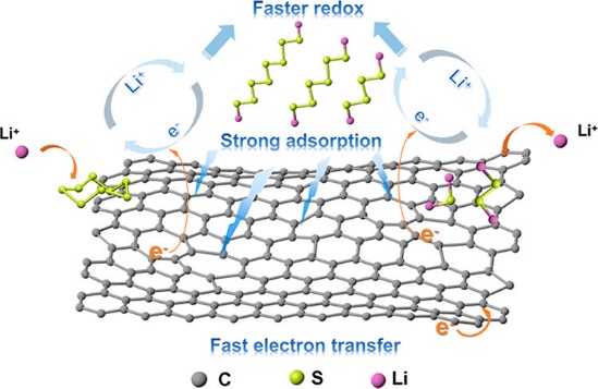 图4. 富本征缺陷碳材料促进对多硫化物的吸附和催化转化