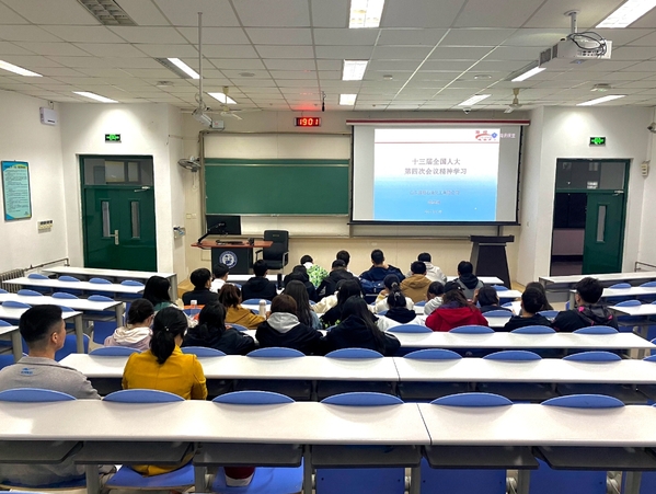 4月1日,化学工程学院环境2001、2001团支部在西环303教室听取了两会精神报告会。全国人大代表袁俊洲同志、20级辅导员栾琳、李宇航出席会议,环境2001、2002团支部全体成员听取报告。
