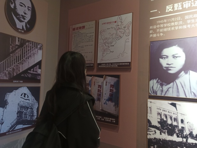 全体成员于北门外集合乘坐公交车到达青岛革命烈士纪念馆,随后,依次按序进入纪念馆。全体成员在烈士纪念碑前默哀、鞠躬,学生代表进行献花,以表达对先烈的怀念及追思。紧接着,全体成员进入抗战纪念馆和军魂纪念馆内进行参观。通过烈士纪念馆内讲解员的讲解以及对烈士事迹、烈士遗物的参观,学生深切地感受到了老一辈革命先烈敢于斗争、不怕牺牲、艰苦奋斗的精神风范。团支部书记于洪宇在参观后感慨道:“革命先烈的英雄事迹令人泪目、感动,也更加激发了我们青年一代要勇于担当作为,不懈奋斗,矢志报国!”
