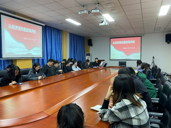 会议伊始,党支部书记卢明星首先带我们回顾了改革开放前中国的面貌:计划经济,物资匮乏,生产积极性极低。随后,卢明星介绍了改革开放的总设计师邓小平同志,他是中国共产党第二代领导人的核心,兢兢业业带领中国人民走上改革开放的道路,解决了中国人民的温饱问题。紧接着,他从安徽省凤阳县小岗村实行“分田到户,自负盈亏”的家庭联产承包责任制讲起,分别从建立经济特区、双轨制和价格闯关、开放沿海城市、开放浦东、南巡讲话、设立经济特区等方面详细地介绍了改革开放的历程。最后,卢明星讲到:“改革从来就不是一件容易的事,要有能够发现自身的问题的能力,要有敢于否定自己的勇气,还要有敢于尝试的魄力。”
