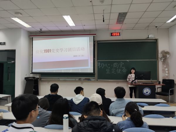为庆祝中国共产党成立100周年,贯彻落实中央和学校党委关于党史学习教育的要求,帮助支部成员更好的了解党史,营造党史学习的浓厚氛围,应化1901团支部于4月29日举办“初心向党,坚定使命”主题团日活动。本次活动由团支书杜攀刚主持,团支部全体成员参加。