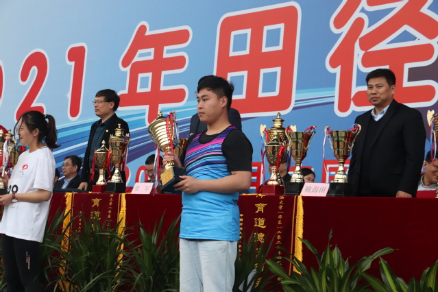 院部教工团体总分第二名,学院工会主席杜峰上台领奖