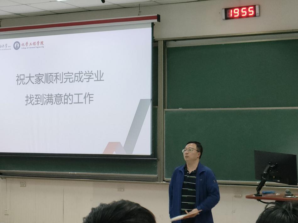2021年5月22日,能化1701班在东环105教室召开了以诚信考试和诚信学术为主题的班会。会议邀请班主任赵静宜老师及班导曲剑波老师为大家讲解学校《学生手册》中关于诚信考试和诚信学术的要求以及相关法律法规,同学们无一缺席,认真听讲。会议第二部分,两位老师分享了给同学们的毕业季建议,包括安全健康是第一位的、努力完成学业、同学之间加深情感、毕业季活动参与、把握求职机会、理性二战等一系列内容。其中重点强调了安全健康问题,一方面对于疫情时刻不能放松,另一方面要尤其注意实验室安全,保护自己的同时也能保护他人。两位老师逐一了解了同学们的毕业去向并针对每位同学的状态和目标给予许多建议,同学们都受到极大感触。会议结束后,两位老师与全体同学合影留念。