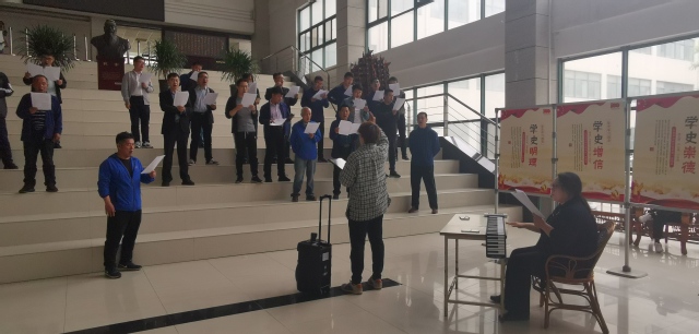 由学校工会组织的“颂歌献给党”合唱比赛将于6月中旬举行。化院工会组织教职工积极参加,组成百人合唱团,歌颂党的光辉历程,向党的百年华诞献礼。为高质量高标准地参加合唱比赛,学院工会聘请专业指导教师进行指导,合唱团的歌声在工科楼A座大厅激荡飘扬。