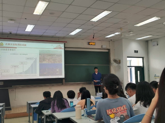 为持续推进党史学习教育,坚定学生党员的初心使命,6月10日,辅导员党支部书记刘伟于东环203教室为环境系学生党支部讲授“改革开放史”专题党课。