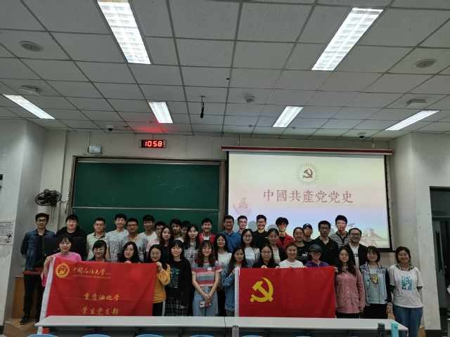在建党100周年来临之际,为深化党史学习教育,学院副院长刘东以《中流击水——中国共产党创业史奋斗历程》为主题讲授专题党课,2018级辅导员刘伟、重质油化学学生党支部全体党员以及应化1802班全体同学参加。