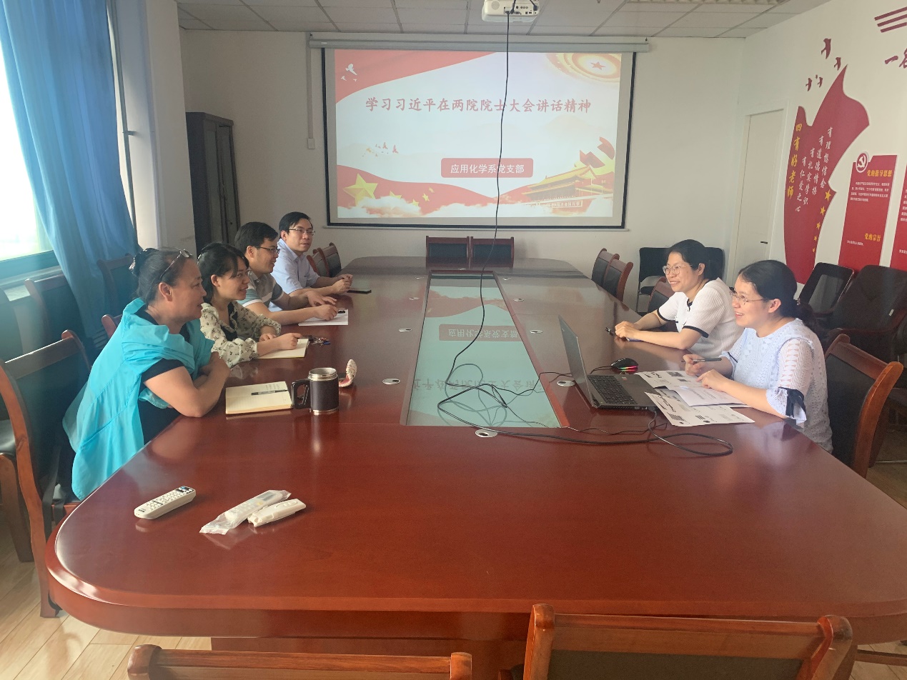“当今世界的竞争说到底是人才竞争、教育竞争。” 6月18日下午,应用化学系党支部在工科A629会议室集中学习并交流了习近平总书记在两院院士大会、中国科协第十次全国代表大会上的讲话精神,会议由支部书记杨修洁同志主持。
