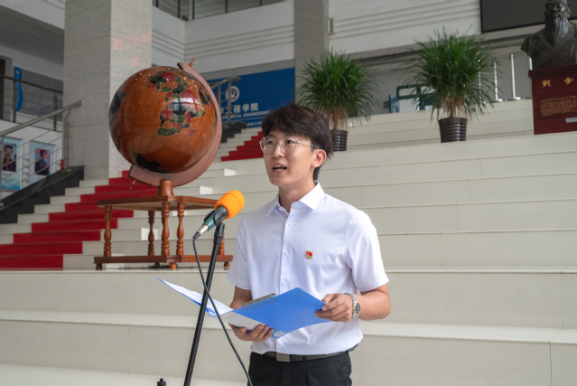 在团委书记郭孟的领誓下,全体新党员面朝党旗庄严宣誓,现场老党员也郑重举起右手重温入党誓词。新党员刘家铭代表学生党员发言,他表示,将强化理论武装,坚定理想信念;将勤于学习,敏于求知,锤炼过硬本领;将脚踏实地,践行誓言,把青春梦融入中国梦,担当青年责任,践行时代使命。