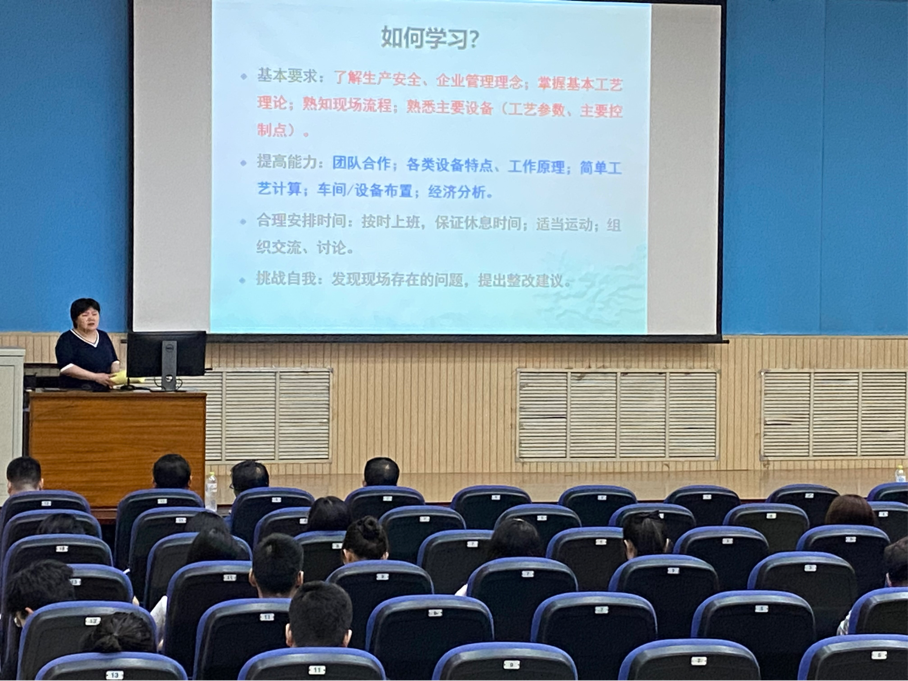 动员会主要包括两项内容。首先,学院院长助理陈小博老师为全体学生做实习总动员。陈小博老师从认识化工说起,讲到专业实习与理论课的关系,及如何完成专业实习,重点强调了纪律和安全方面。然后,由化学工程系丁传芹老师对实习手册的使用与绘图要求进行了说明,重点强调了规范性。动员大会结束后,根据实习地点不同,由各带队教师对相应实习地点的具体行程安排和及纪律要求进行了说明,并再次强调了实习安全问题。