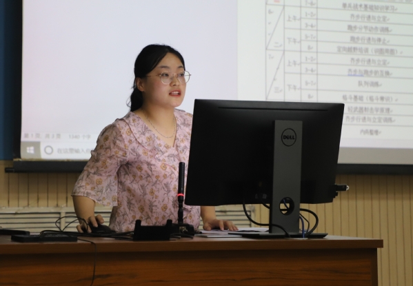会上,魏孟吉从军训意义、相关准备、训练内容、生活制度、军容风纪、安全防范等方面介绍了2020级军训工作须知,着重强调了军训纪律问题,要求大家一切行动听指挥,按照军人的标准要个要求自己。魏孟吉向大家详细介绍了军训的作息时间安排与内务要求,强调要务必注意自身安全,提醒学生提前准备好军训相关物品,并对军训服装发放相关工作进行了安排。之后,栾琳向学生介绍了军训工作整体安排,并对第一周每日任务进行了解析。同时,栾琳向学生介绍每个连队的教官组成,并列举了一些军训期间的集体活动,鼓励学生积极参与集体活动,充分展现自我。最后,魏孟吉与栾琳一同总结了大一学年的学习成果,并希望学生在思想上重视学习,把学习作为大学生活的第一要点,同时强调第二课堂的重要,鼓励学生丰富课外生活,加强第二课堂建设。