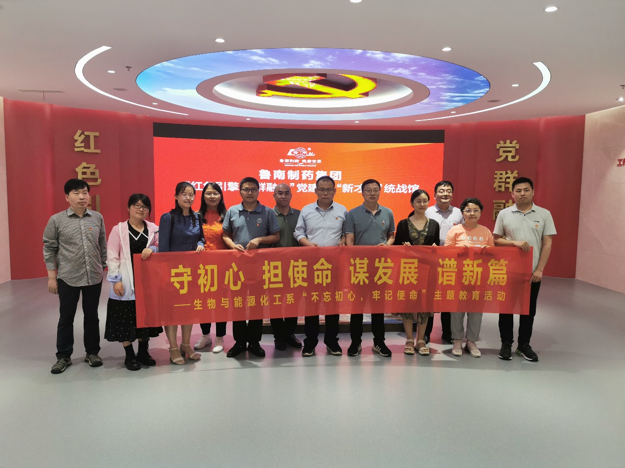 为强化“不忘初心、牢记使命”主题教育,以饱满的热情迎接建党一百周年,6月28-29日,生物与能源化工系党支部一行在党支部书记曲剑波的带领下,来到了位于山东临沂的鲁南制药集团,开展以“守初心、担使命、谋发展、谱新篇”的党建暨业务交流活动。