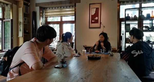 调研队员与海草房工作人员交流 吴尧摄影
