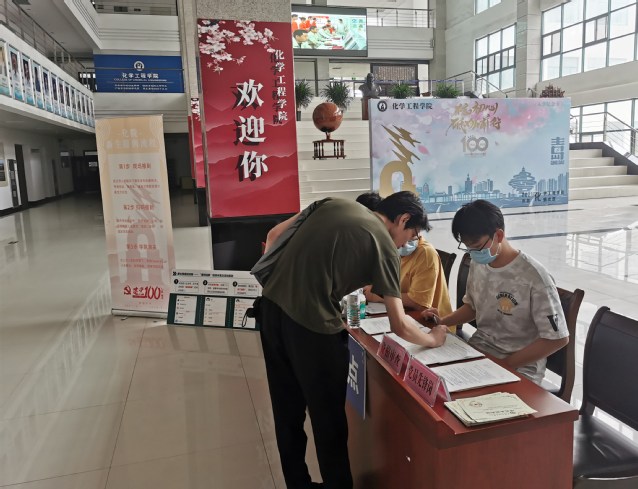 学院以“聚力化院·接续奋斗”为主题布置迎新现场。新生走到工科楼A座东门,迎面看到的是长达8米的欢迎板,“欢迎2021级新生”几个大字让同学们感受到了学院师生的热情。走进工科楼A座,沿着指引牌走入大厅,同学们依次参观 “优秀校友风采展”“优秀研究生集体及个人风采展”“研究生代表成果展”,领略学院优秀学子的风采。在报到点,同学们通过易班迎新扫码报到,取校园卡新生大礼包。最后,同学们在志愿者介绍下参观“光辉的历程”学院文化墙,并在“不忘初心·砥砺前行”主题板前拍摄入学纪念卡。
