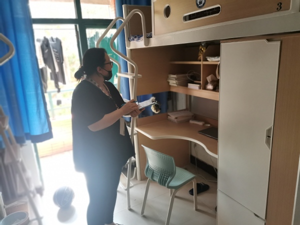 为引导广大学生培养良好的生活卫生习惯,提高安全防范意识,最大限度降低宿舍隐患,9月30日上午,辅导员窦雅琴、李宇航对2021级本科生宿舍开展了安全、卫生专项检查。