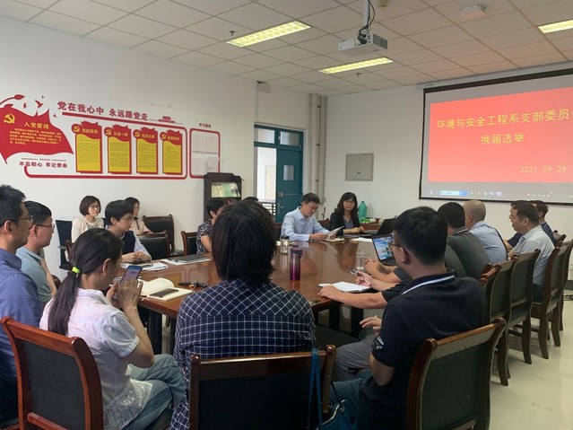 9月28日下午,按照学校对于基层党组织换届文件要求,环境与安全工程系党支部于工科楼A617召开党支部换届选举会议,会议由党支部书记刘芳教授主持,学院副院长刘东教授出席,党支部全体党员参加。