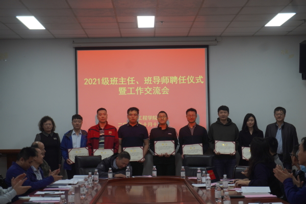 会上,徐光辉宣读了《关于聘任2021级本科班主任、班导师的决定》,张永宁、孙鹏燕、徐光辉分别为2021级本科班主任、班导师颁发聘书。