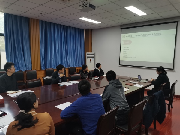紧接着,各位辅导员分年级分专业汇报了上一学期学风建设方面的基础数据,包括各专业的学业预警率、必修课欠学分情况,优良学风班达标率、先进班级体达标率以及四六级通过率等数据,并认真总结了所带学生在学风建设方面存在的问题并分析了原因。随后,辅导员窦雅琴通过相同年级不同学期之间的横向对比、不同年级之间的纵向对比,分解了未来五年学院学风建设指标,全体辅导员结合自己所带年级专业学生的实际情况制定了本学期在学风建设方面的具体工作计划。