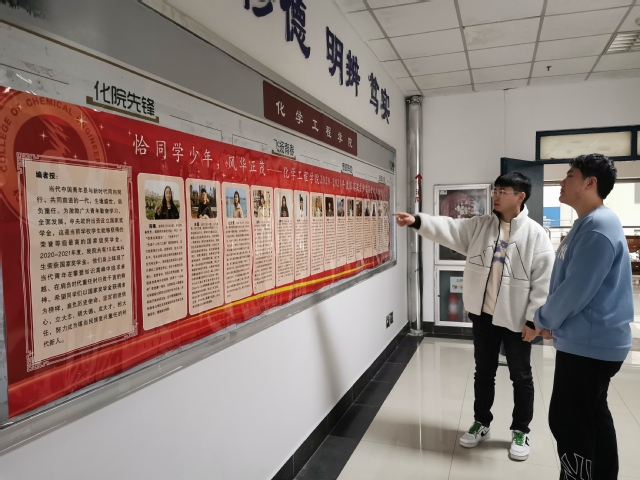 日,化学工程学院国家奖学金评选落下帷幕,为树立优秀榜样,强化典型引路,营造好学、勤学、善学的良好氛围,化学工程学院在工科楼A座举办“恰同学少年风华正茂”国家奖学金获得者风采展,吸引了众多来往学生驻足观看。