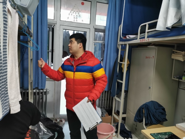 本次专项检查重点排查违规电器使用、人走未断电、私拉电线等安全隐患。经过2个多小时的宿舍检查发现,2019级宿舍总体情况良好,但部分宿舍存在人走未断电、衣物摆放杂乱等现象,针对检查过程中发现的问题,耿旭超要求相关宿舍现场整改并叮嘱同学们要加强安全防范意识,在日常生活中牢记学校规章制度。