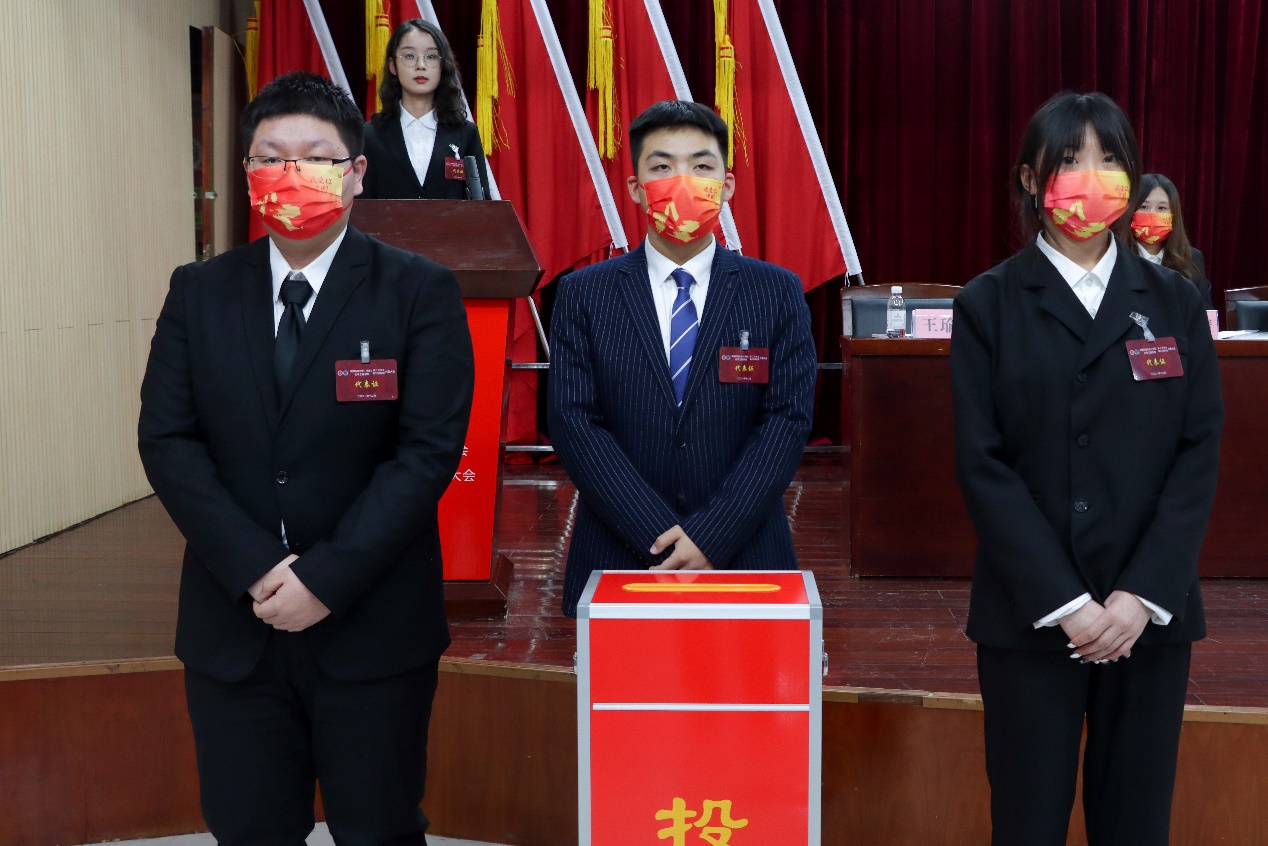 在大会闭幕式暨第三次全体会议上,经过监票人计票人计票之后,总监票人车桐宇和陶文文报告计票结果,并由车桐宇宣布化学工程学院学院第二十四届学生会主席团名单和第九届研究生会主席团名单,刘晓阳、郑雅琦、党雯倩三名本科生和王瑜婷、车垚、徐庆振三名研究生当选。大会听取了关于提案的工作报告,同时审议通过《关于太阳成集团tyc33455cc化学工程学院学生会章程修正案的决议(草案)》和通过关于太阳成集团tyc33455cc化学工程学院研究生会章程修正案的决议(草案)》。随后,学院学生会和研究生会向学院青年学生发出《青春之歌当唱响,砥砺奋斗当自强,为建设特色创新、协调发展的化学工程学院贡献青春力量》的倡议,号召全体青年学生坚定爱国信念,勇于砥砺奋斗、敢于担当责任,成就时代风帆、富有青春朝气,诠释无私奉献,在实现中国梦的伟大实践中放飞青春梦想,为建设石油学科世界一流贡献青春力量。最后,在激昂的校歌中,化学工程学院第二次学生代表大会、第二次研究生代表大会顺利闭幕。