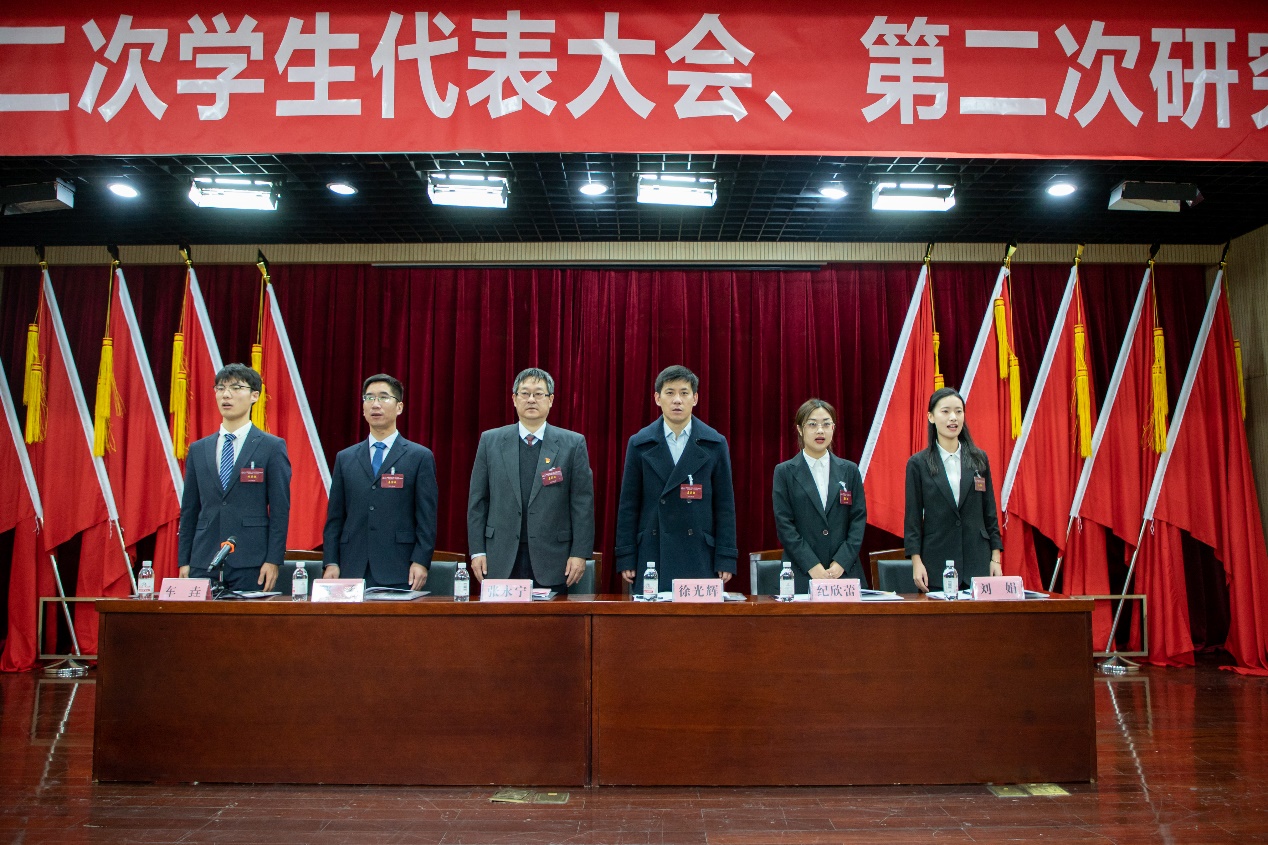开幕式后,学院学生会主席刘晓阳代表上一届学生会作《求真务实、勇担使命,为建设特色鲜明、人才兴院、科研强院的高水平研究型学院贡献青春激扬之力》的工作报告,他回顾了学院上一届学生会在思想引领、组织建设、权益维护等各方面取得的成绩,并提出了今后的工作方向和建设目标。学院研究生会主席车垚代表上一届研究生会作《学以自强 追求卓越,奋力开创高水平研究型学院建设新局面》的工作报告,他从加强思想引领,筑牢精神根基、贯彻改革精神,完善组织建设、推进学风建设,打造多彩校园、活跃学术氛围,打造学术高地、紧跟时代潮流,加强新媒体建设等方面回顾了上一届研究生会的工作,同时提出了下阶段学院研究生会的总体思路和主要任务。
