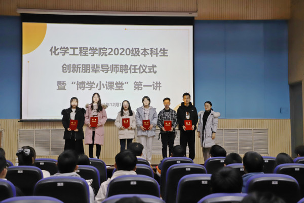 据悉,“创新朋辈导师”源自化学工程学院2006年开始推行的“教授博士下班级”活动,旨在以“博学务实 创新奋进”为引领,以“大学长 身边人”为引导,进一步推进优良学风建设,促进朋辈交流互动,切实提高学生创新意识和创新能力,为本科生的生涯发展打下良好基础,为学院人才培养注入新的动能。