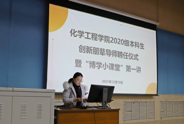 为加强学风班风建设,培养学生科研意识和创新能力,12月10日,化学工程学院2020级在南教100举办创新朋辈导师聘任仪式,聘任16名优秀博士研究生担任班级导师,通过朋辈教育助推学生全面发展。团委书记郭孟以及创新朋辈导师代表出席仪式,2020级辅导员和全体学生参加活动。