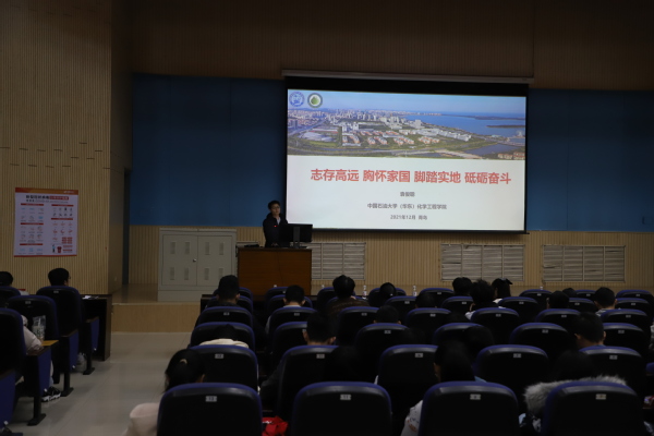 仪式结束后,化工2001班创新朋辈导师、2021级博士研究生袁俊聪以《志存高远 胸怀家国 脚踏实地 砥砺奋斗》为题,结合个人成长经历,从思想成长、实践服务、逐梦拼搏三个方面为2020级全体学生作专题分享,他希望同学们突破“内卷”,切实做到学以固本,思想铸魂,做一名坚定的青年马克思主义者;学以立业,引领服务,做一名学生工作的奉献者;学以提境,格物致知,做一名追梦路上的奔跑者。