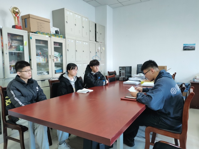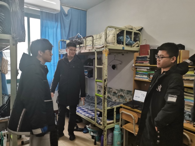 班干部见面会于当天下午在工科楼A座215举行,会议由2018级辅导员刘伟主持,化学1801、化学1802班长支书参加会议。会议伊始,刘伟对化学专业的归来表示热烈欢迎,并简单地进行了自我介绍以及年级情况介绍。紧接着,他分别就党团班级建设、安全、学风、升学就业以及特殊群体等几个方面与化学专业的班干部进行交流。同学见面会由刘伟带领年级学生工作组走访寝室的形式开展,走访期间,他向化学专业学生们介绍了学院的浓厚的学习氛围、丰富的科研竞赛机会以及优秀的指导教师等情况,希望同学们能够在新的平台里继续发光发热。交谈过程中,刘伟还对宿舍安全卫生、寒假离返校流程等进行了强调,要求学生们严格落实好学院的相关规定政策,平平安安回家。