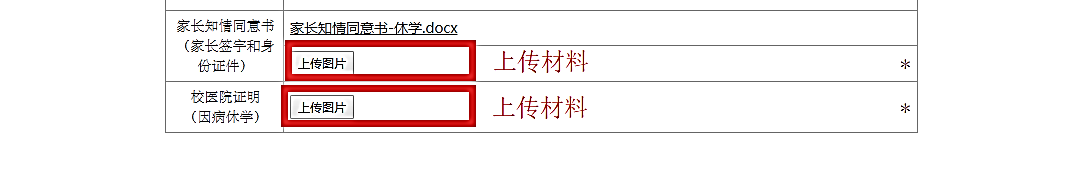 个人休学申请、校医院诊断证明书(因病休学须提供)、家长知情同意书(休学材料见附件2)。