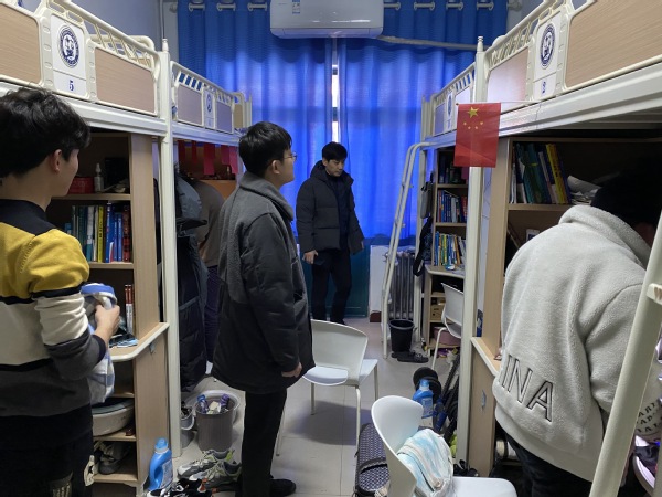 为提高学生安全意识,消除安全隐患,促进学生宿舍环境改善,紧扣新学期开学的关键节点,2月20日下午,学院党委副书记徐光辉带领全体辅导员组织开展了全院学生宿舍安全卫生检查。此次检查主要针对学生宿舍是否存在安全隐患、学生是否违规用电、宿舍卫生是否达标,严查宿舍内私拉电线、网线、床帘,使用大功率电器、违禁物品等违规现象。