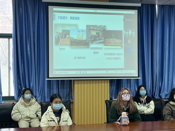 首先,姜菲以个人经历为依据,从挑战、压力、收获等方面介绍了大学生活,并给同学们以启示——要平衡好学习和放松时间,大学依然是一个需要积累的时间段,也要敢于尝试,成为一个全面发展的人;不要过于焦急于未来职业发展,盲目焦虑。马文贞因在甘肃支教,故通过线上的形式与大家见面,通过介绍自己的大学经历、支教所闻所见,给学生们提出了“抓住每一寸时间,丰富自己,拓展视野,学如逆水行舟,不进则退”的建议。随后,两位学姐就女生们的提问做出了细心的解答。